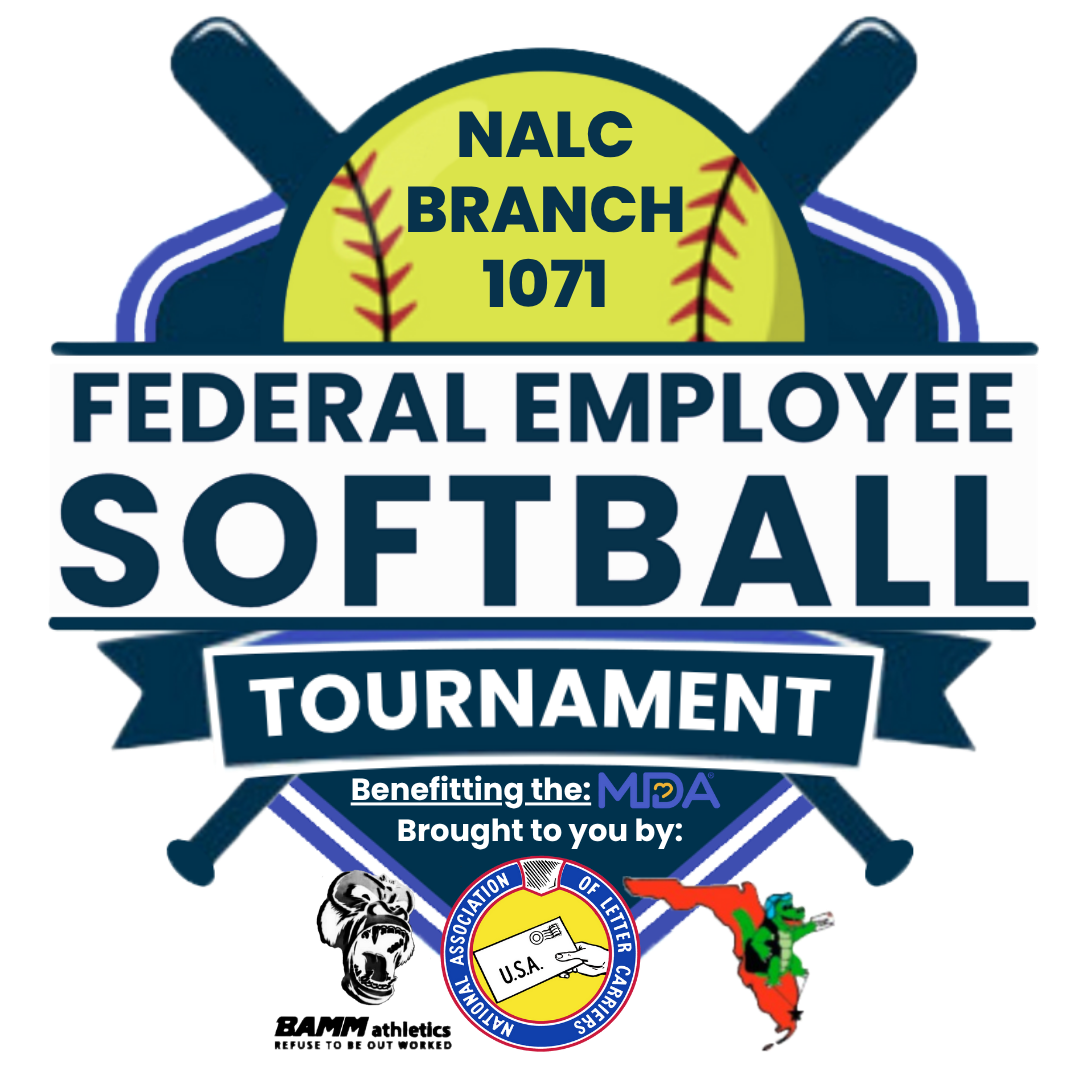 The Federal Employee Softball Tournament is brought to you by: NALC Branch 1071, BAMM Athletics, and Federal Injury Group.